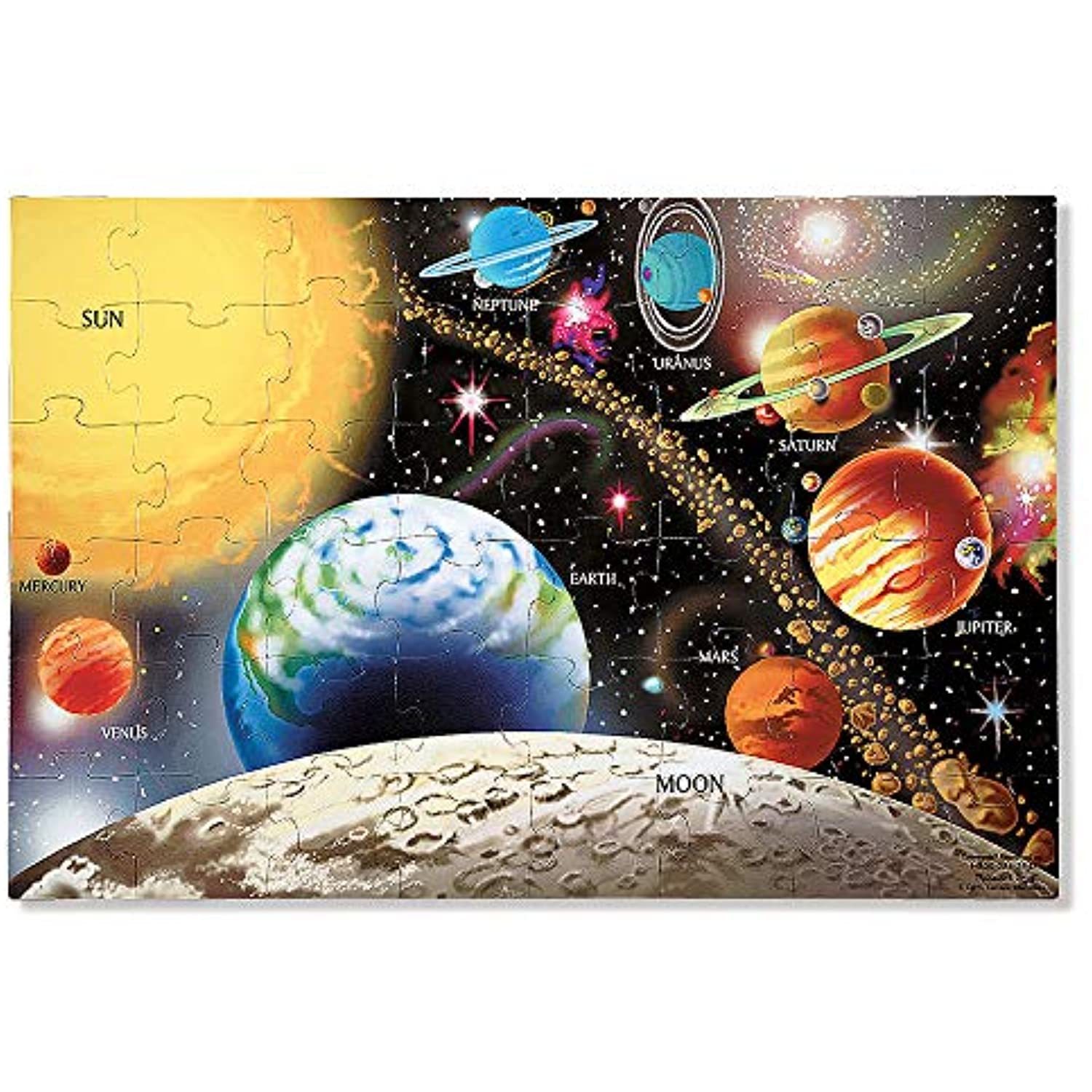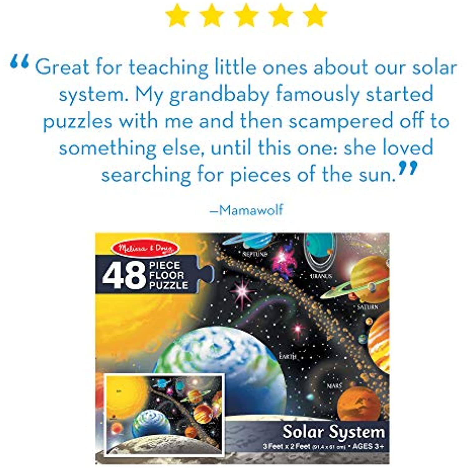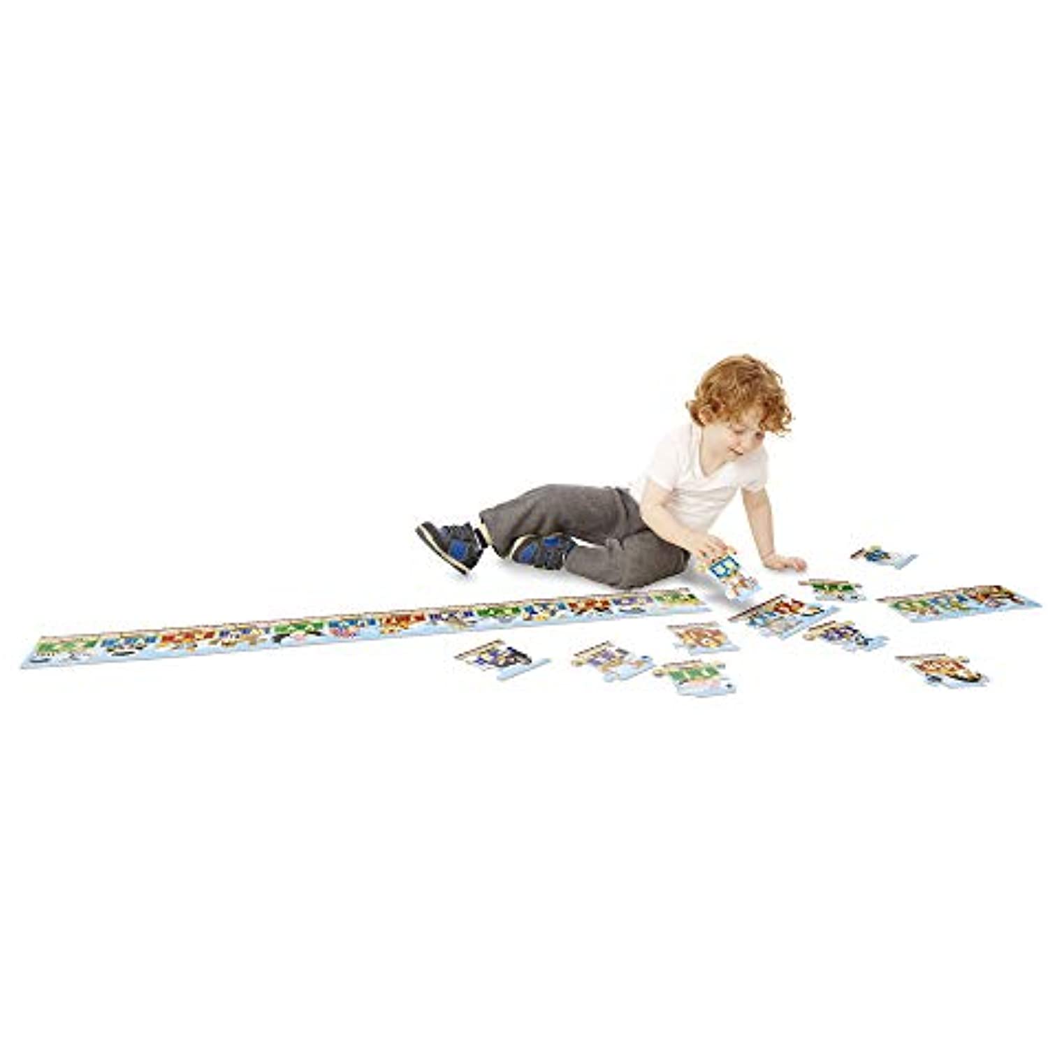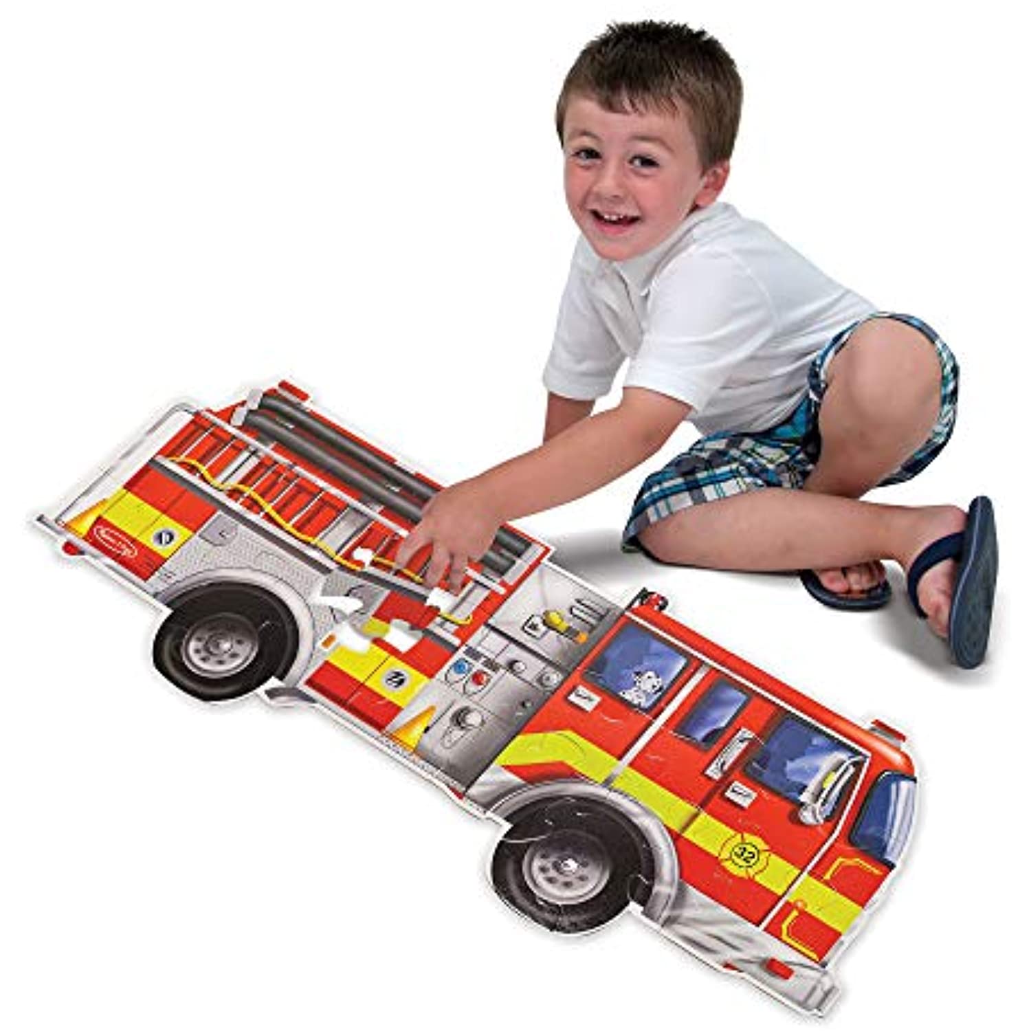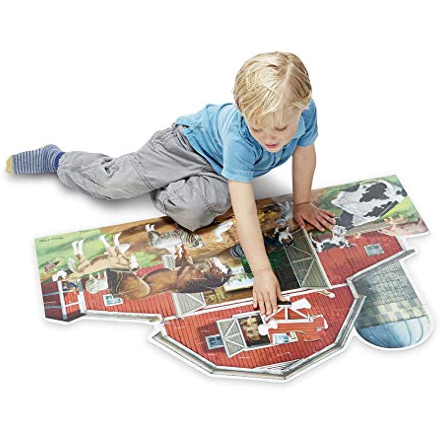 Melissa & Doug floor puzzles are extra large and extra tough! built to last through years of play, the jumbo cardboard pieces are just right for young children: they are easy to grasp, lift, and connect, and they fit together to create stunning oversize scenes. This assortment of six puzzles for kids three and older includes solar system (48 pieces), underwater (48 pieces), dinosaurs (48 pieces), the four-foot long giant fire truck (24 pieces), the 10-foot-long alphabet express (27 pieces), and the barn-shaped busy barn (32 pieces). these puzzles are an engaging way to help kids build developmental skills, such as fine motor skills, hand-eye coordination, cognitive abilities, and social skills.