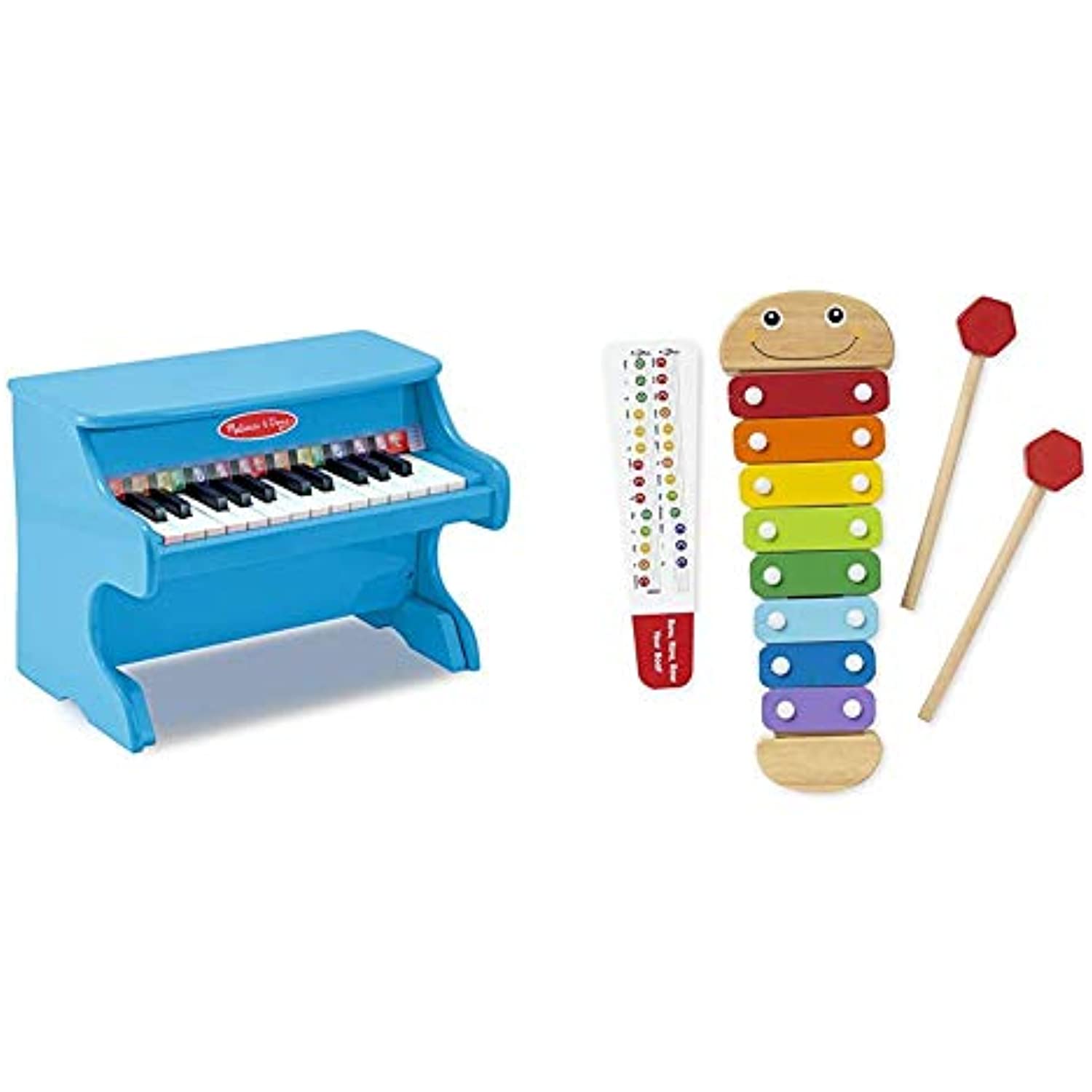 Melissa & Doug Learn-to-Play Piano, Blue & Caterpillar Xylophone, Musical Instruments, Rainbow-Colored, One Octave of Notes, Self-Storing Wooden Mallets, 18'' H x 6.2'' W x 2'' L