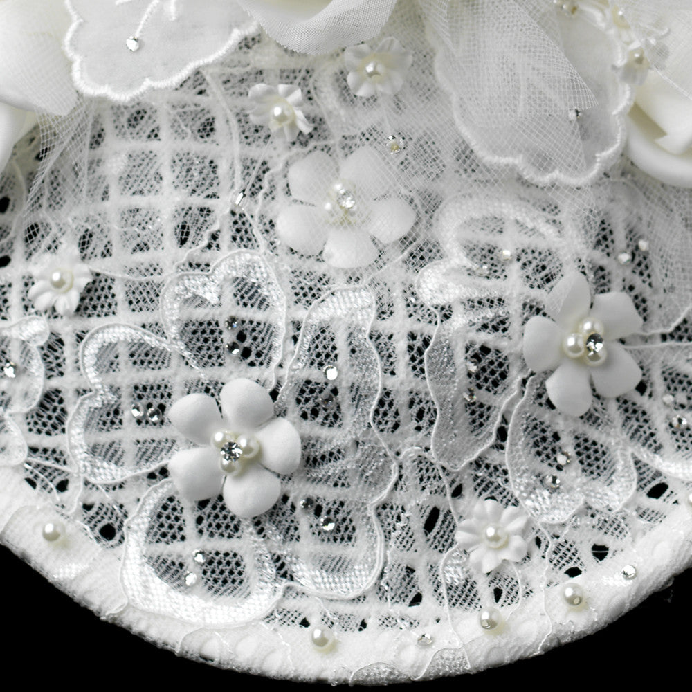 Elaborate Ivory Flower Russian Tulle Pearl Bridal Hair Cap Clip 9672