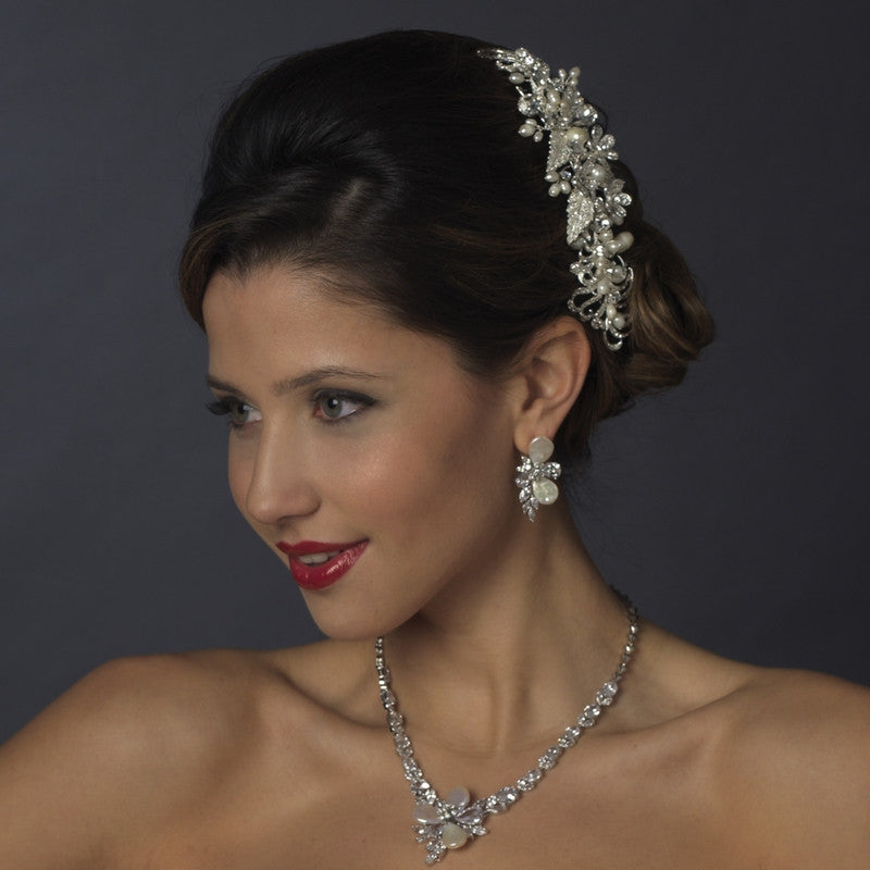 Silver Clear and Freshwater Pearl Hair Comb 913