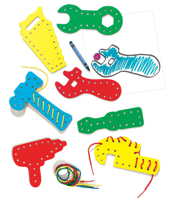 Kids love these Lacing & Tracing™ activities. Colorful, heavy-duty chipboard lies flat for smoother tracing of the fun shapes, animals, trains, planes, snacks, and more. Lacing helps promote good penmanship because it develops the pincer grip. The activities also increase fine-motor control, introduce problem-solving, develop concentration, and encourage quiet play. Laces are 27" long with easy-to-thread 1" tips. Pieces vary from 4" to 7" in size.