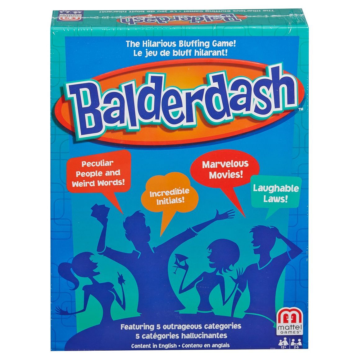 - Balderdash™ game features compelling, unbelievably true content and categories include people, words, initials, and movies.