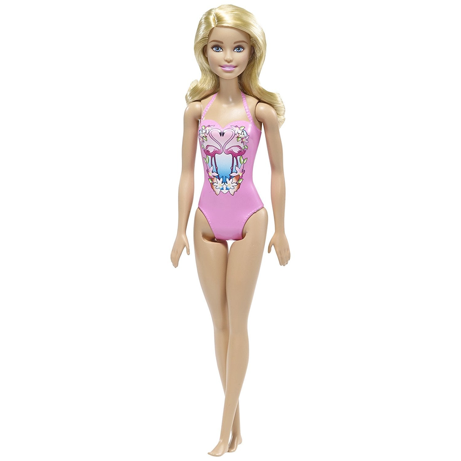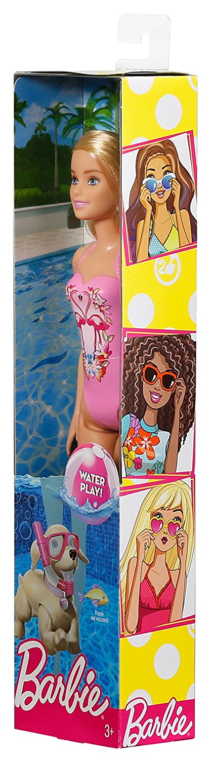 Barbie doll and her friends are ready for fun in the sun! Whether heading to the beach or the pool, they'll stay cool in fabulous swimwear. Barbie doll makes waves in a bright swimsuit with bold print, beautiful colors and unique silhouette. Collect them all for a pool party or a day at the beach (each sold separately). Includes doll wearing painted plastic swim fashion. Doll cannot stand alone. Colors and decorations may vary.
