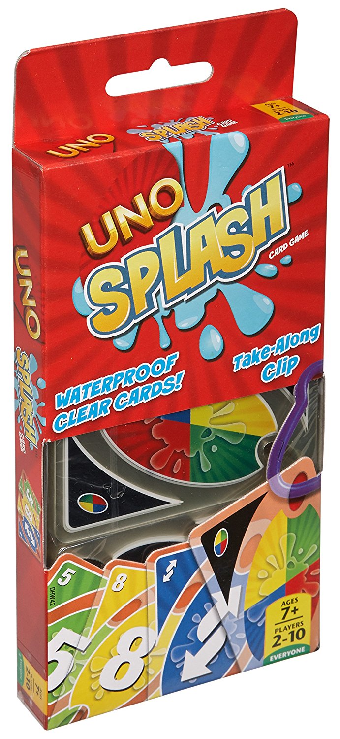 The durable plastic cards resist water so you can enjoy Fast Fun for Everyone!™ anywhere-even outdoors. This version also comes with a handy clip that keeps all the cards together and attaches to a beach bag, backpack or camping gear. You'll be ready to play UNO wherever you want!