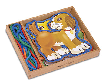 With adorable pets pictured on both sides, they'll have fun practicing lacing and tracing skills while working on their hand-eye coordination.