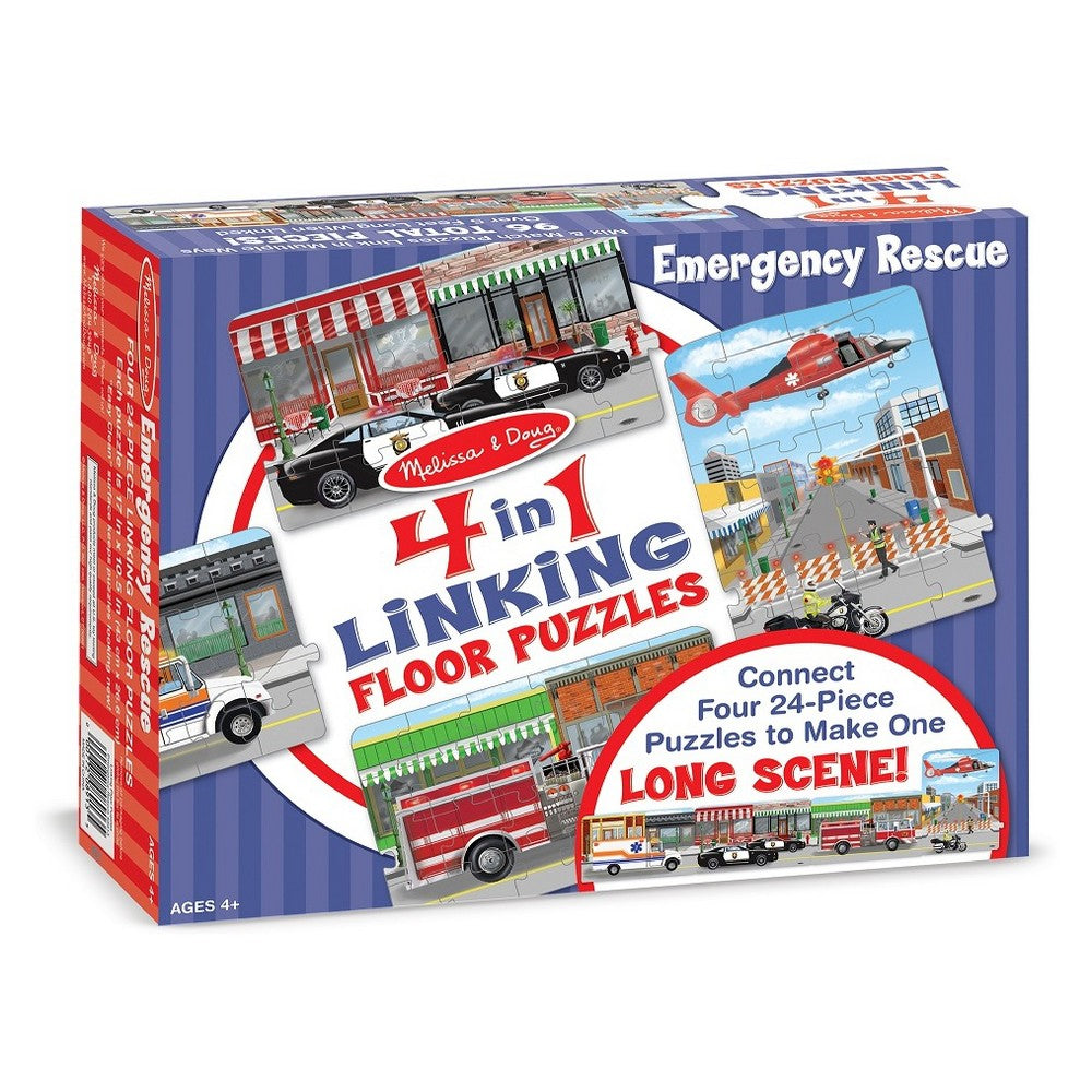 Melissa And Doug Rescue Vehicles 4-In-1 Jumbo Linking Floor Puzzle 96pc