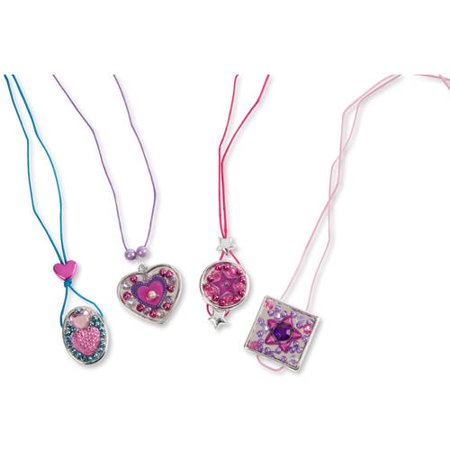 Melissa & Doug Design & Combine Pendants:All-inclusive jewelry-design kitIncludes materials for 4 decorate and create pendant necklacesMore than 100 iridescent and metallic beads, gems and stickersEasy to make, fun to wear and share Promotes fine motor skills and creativity