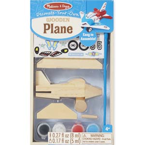 Melissa & Doug Decorate-Your-Own Wooden Plane Craft Kit:4"-long wooden airplane to assemble and decorateEasy to assemble: Insert wings and the axel, add the wooden wheels (glue included)Includes 4 pots of paint, paintbrush and 47 stickers for decoratingDevelops fine motor skills and encourages creativityAges 4+5" x 8.75" x 1.5" pkg