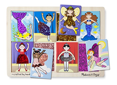 Product Description Discover a whole new way to puzzle! Clever tile-shaped pieces are simple rectangles on the outside, but die-cut on the inside so the patterned puzzle board shows through. Place the tiles in the puzzle board to match each fairy, ballerina, and mermaid to her pattern and solve the puzzle! Children love finding the solution to complete all eight characters “correctly"—then mixing up the tiles to create unique fashion combinations. The sturdy wooden pieces are easy to grasp and maneuver, so moving them into the right (or wrong!) locations is an enjoyable challenge. The puzzle comes with lots of extended-play ideas, too—so as kids fill the figures with colors and patterns, they’ll also be filling their playtimes with enrichment, learning, and lots of pattern fun. From the Manufacturer From classic wooden toys to crafts, pretend play, and games, Melissa & Doug products provide a launch pad to ignite imagination and a sense of wonder in all children so they can discover themselves, their passions, and their purpose. Since the company’s founding more than 25 years ago, Melissa & Doug has consistently delivered innovative products that inspire open-ended thinking, encourage kids to see new possibilities, and offer Countless Ways to Play. It’s part of a bigger vision to Take Back Childhood. Because by giving children a true childhood with the space and freedom to explore their world, we give them a path to realizing their full potential!