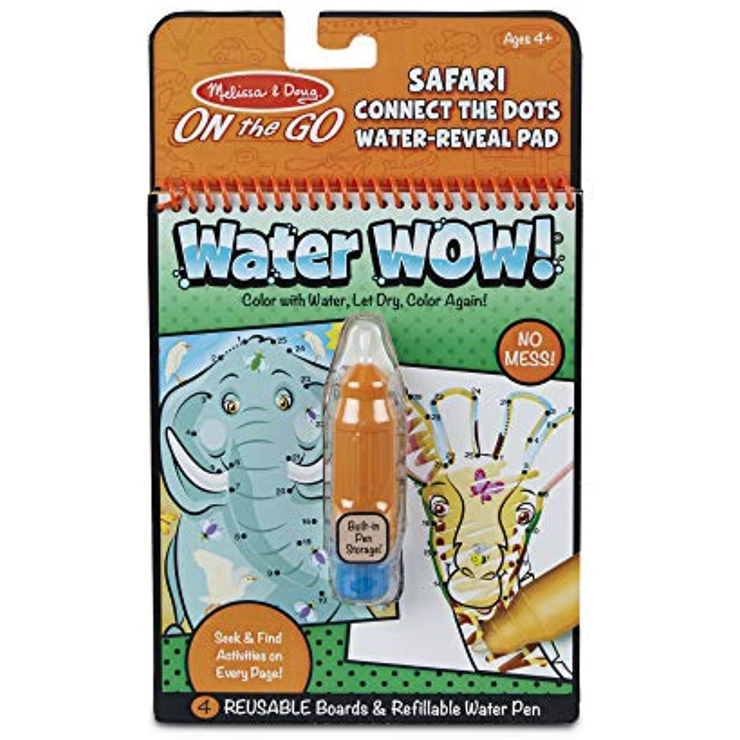 • 4 safari-themed coloring boards and refillable water pen; connect the dots and search-and-find activities with every scene