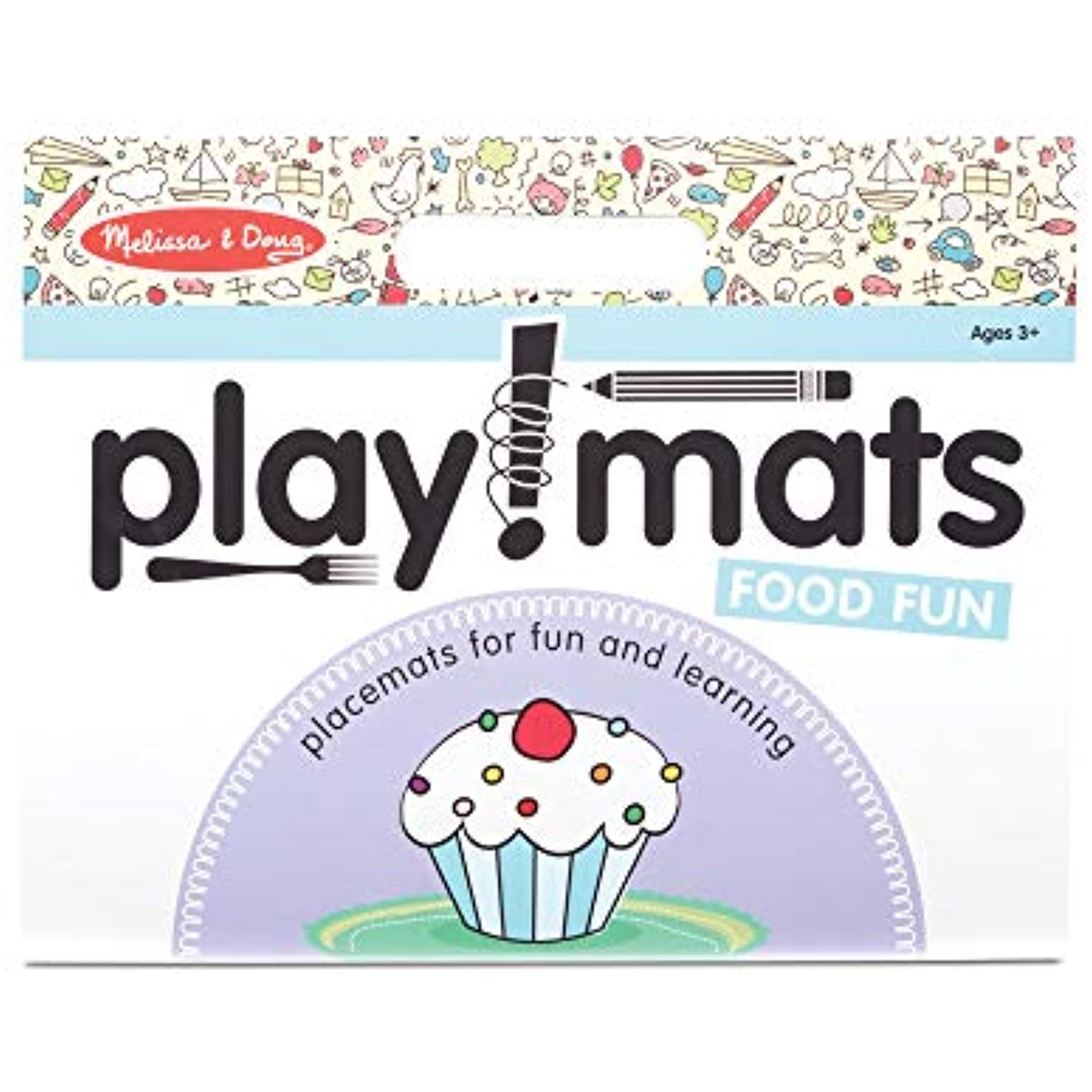 Melissa & Doug Playmats Food Fun Take-Along Paper Coloring And Learning Activity Pads (24 Pages):24-page coloring and activity pad with a food theme for fun and learningColoring, cutting, and creative activities include completing partial pictures, learning to draw, practicing patterning and counting, finding matching pictures, and moreHigh quality white bond paper tears cleanly away from the pad, perfect for use as entertaining recyclable placemats for kidsHelps promote fine motor skills, letter and number skills, color recognition, creative expressionMakes a great gift for preschoolers to school-aged kids, ages 3 to 7, for hands-on, screen-free play14 x 11 x .25 pkg