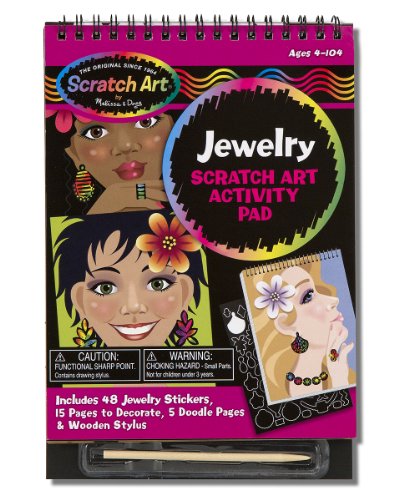 Product Description This one-of-a-kind Scratch Art activity pad is filled with smiling faces and graceful hands to adorn with Scratch Art jewelry stickers. Just use the wooden stylus to scratch the black surface of the stickers, revealing rainbow swirls with every stroke. Then peel them up and stick them onto the pages to style the models! This unique arts-and-craft set includes a bound book with 15 model pages, 5 bonus doodle pages, 48 stickers, and a wooden stylus that stores right in the cover. From the Manufacturer This one-of-a-kind Scratch Art activity pad is filled with smiling faces and graceful hands to adorn with Scratch Art jewelry stickers. Just use the wooden stylus to scratch the black surface of the stickers, revealing rainbow swirls with every stroke. Then peel them up and stick them onto the pages to style the models. This unique arts-and-craft set includes a bound book with 15 model pages, 5 bonus doodle pages, 48 stickers, and a wooden stylus that stores right in the cover.