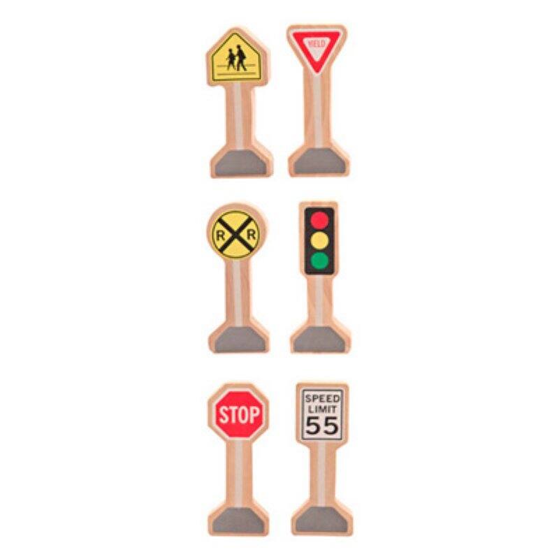 Set of six Whittle World play pieces.Includes stop sign, crosswalk sign, speed-limit sign, railroad-crossing sign, yield sign, traffic light.Sturdy, solid-wood construction.Six sturdy wooden sign pieces are sized to work with all Whittle World sets.Ideal for building sorting, matching and counting skills and hours of imaginative play.