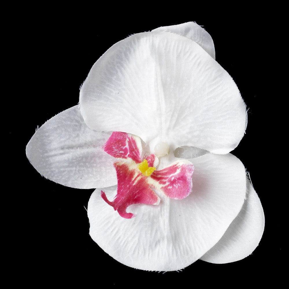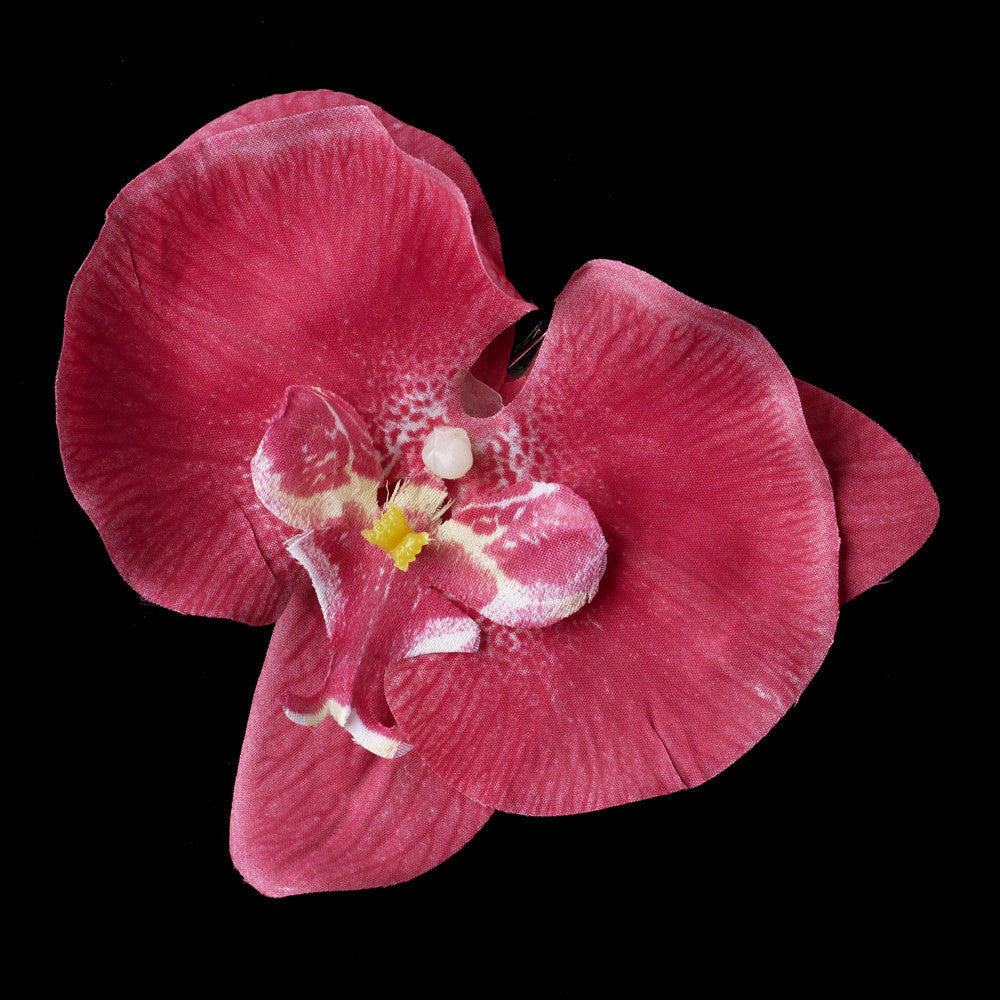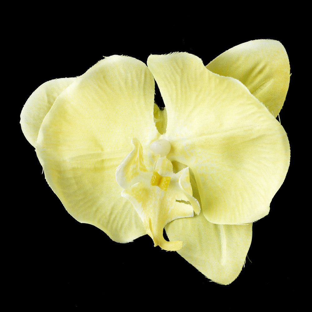 A green orchid flower hair clip that is perfect for bride or bridesmaids. This hair clip is great for destination or beach side weddings. Colorful petals with accented, this flower looks beautiful with all different colored gowns for a summer theme wedding.