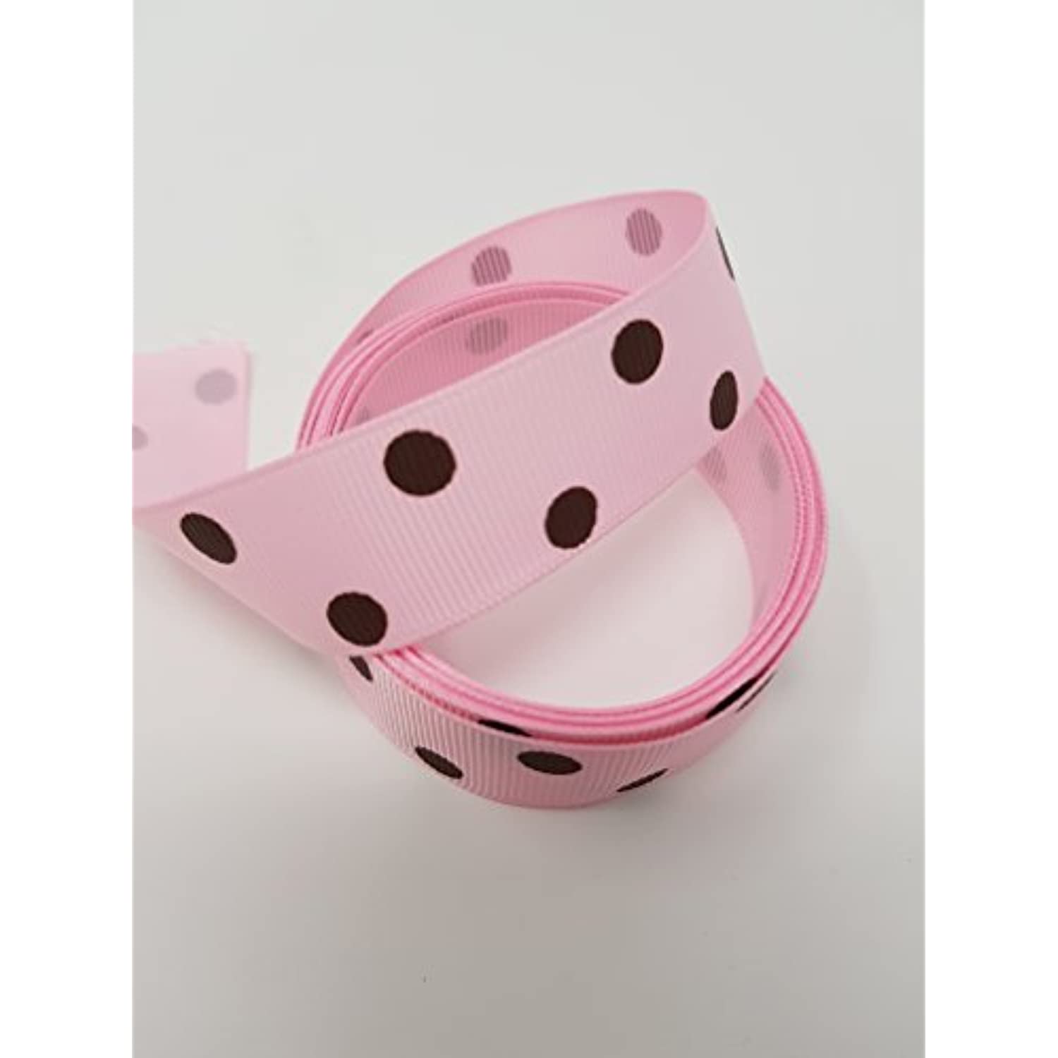 Polyester Grosgrain Ribbon for Decorations, Hairbows & Gift Wrap by Yame Home (7/8-in by 50-yds, ys07030209ae - Brown Polka Dots w/Pink Background)