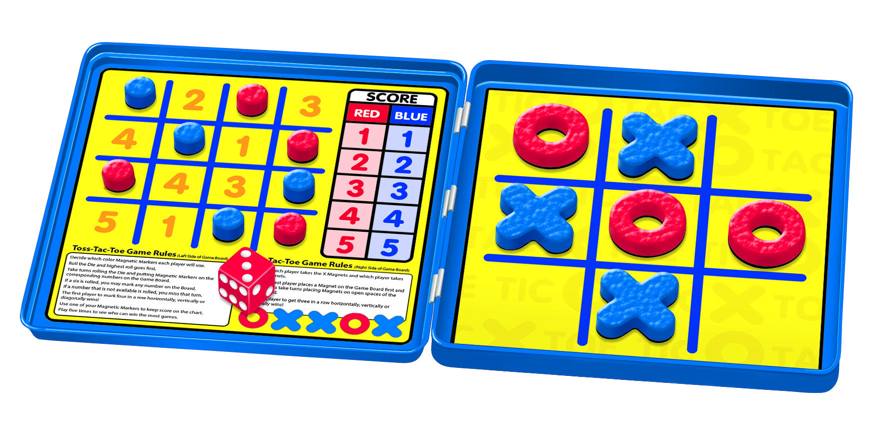 Play Tic-Tac-Toe on the regular game board, or roll the die to play Toss-Tac-Toe on the numbered game board.