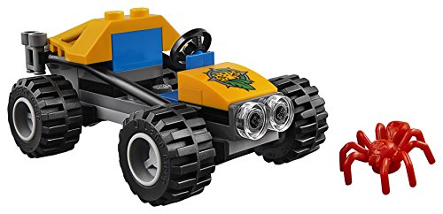 Go exploring in the wilds of the LEGO City jungle with the Jungle Buggy featuring a minifigure cockpit and space in the back for machete and binoculars elements, plus a buildable statue with hidden diamond element, moving leaf and a red spider figure. Includes a minifigure.
