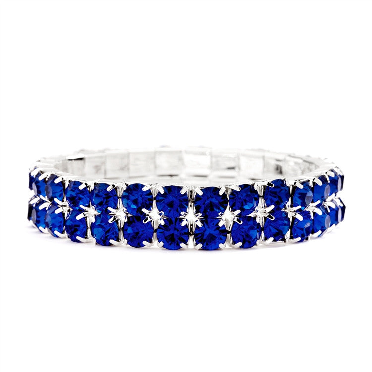 If you love Old Hollywood, you'll love Mariell's stunning rhinestone jewelry. With 2 large rows of sparkling AB rhinestones, this stretch bracelet measures 1/2" wide and gives you all the glamour and style of real gold and diamond jewelry.