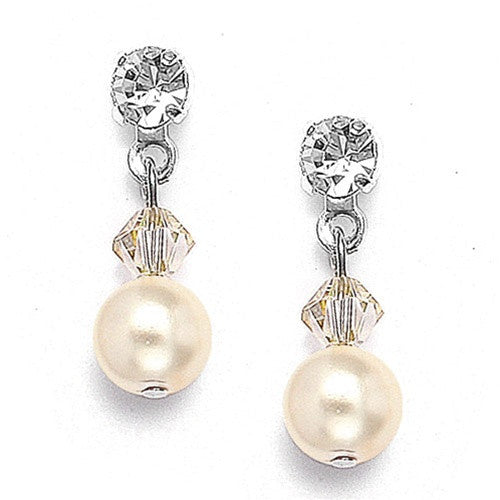 Mariell's best-selling bridal and bridesmaids earrings have a crystal top with a pearl drop. This popular jewelry is hand-crafted in the USA in Pierced or Clip.
