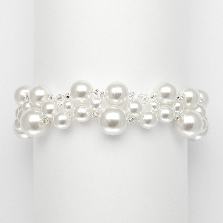 Crystal & Pearl Bubbles Bridal Bracelet - White 2113B-W-CR-S
