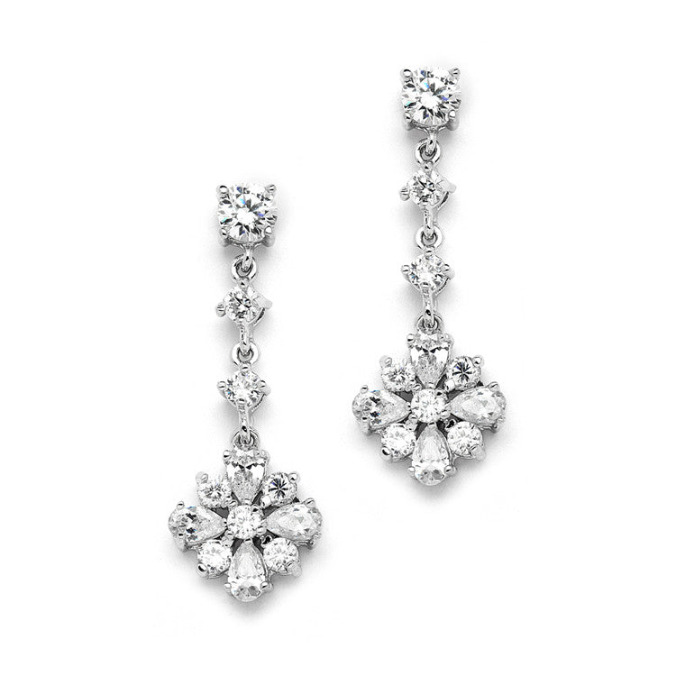 Treat yourself to true Art Deco glamour with these stunning Mariell earrings. Measuring 1 1/4" h x 1/2" w, they feature an abstract CZ starburst design in a high-polish silver rhodium setting. Perfect for brides, bridesmaids, or prom!
