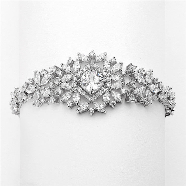 Dramatic CZ Bridal Bracelet with Cushion Cut Center 4392B-S