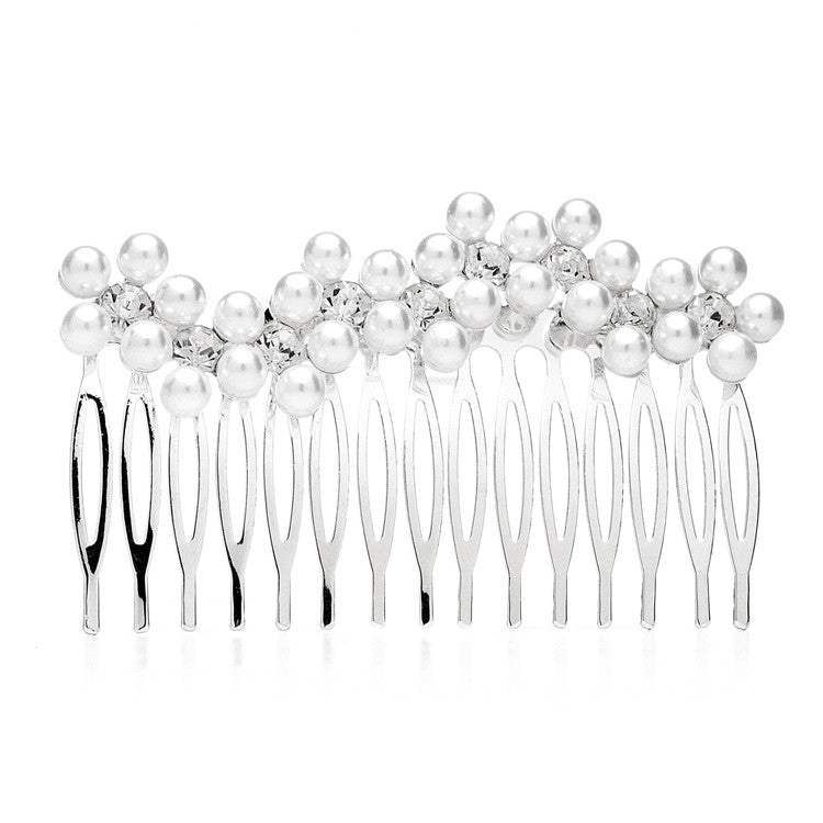 Elegant Pearl & Crystal Wedding Comb with Graceful Wave 4223HC