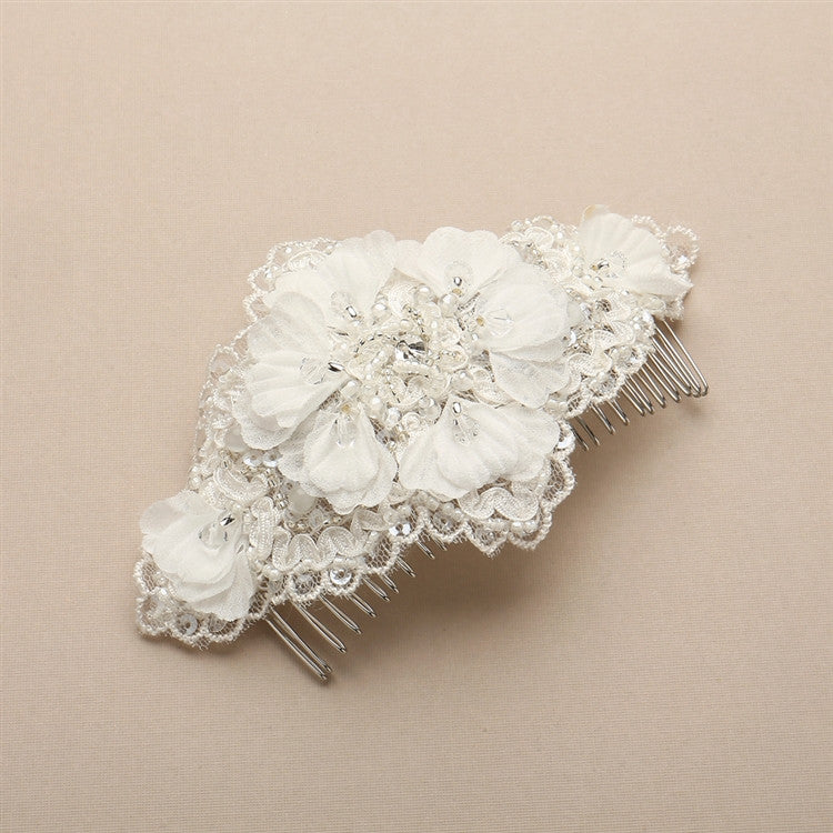 Ivory Crystal Lace Bridal Comb with Delicate Crepe Petals 4485HC-I