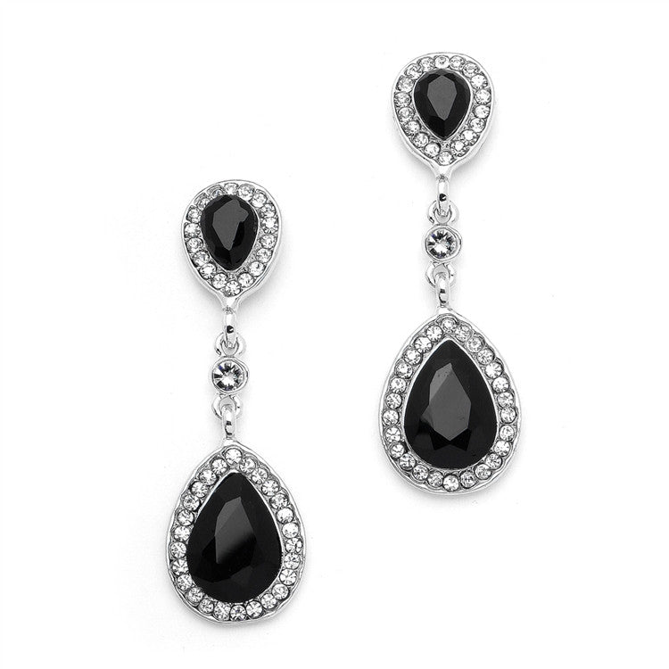 Vintage styling and classic elegance define these Jet Black pear-shaped earrings framed with pave crystals. Mariell's gorgeous onyx-tone special occasion earrings with a sophisticated dose of sparkle! 1 7/8" h. Rhodium plating.