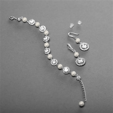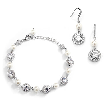 Mariell Ivory Pearl and Cubic Zirconia Bridal Bracelet and Earrings Set 4580BS-I-S