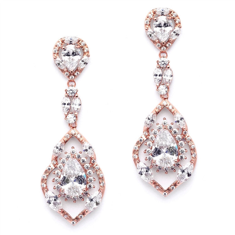 Mariell Rose Gold Cubic Zirconia Dangle Wedding Or Prom Earrings 4018e-rg