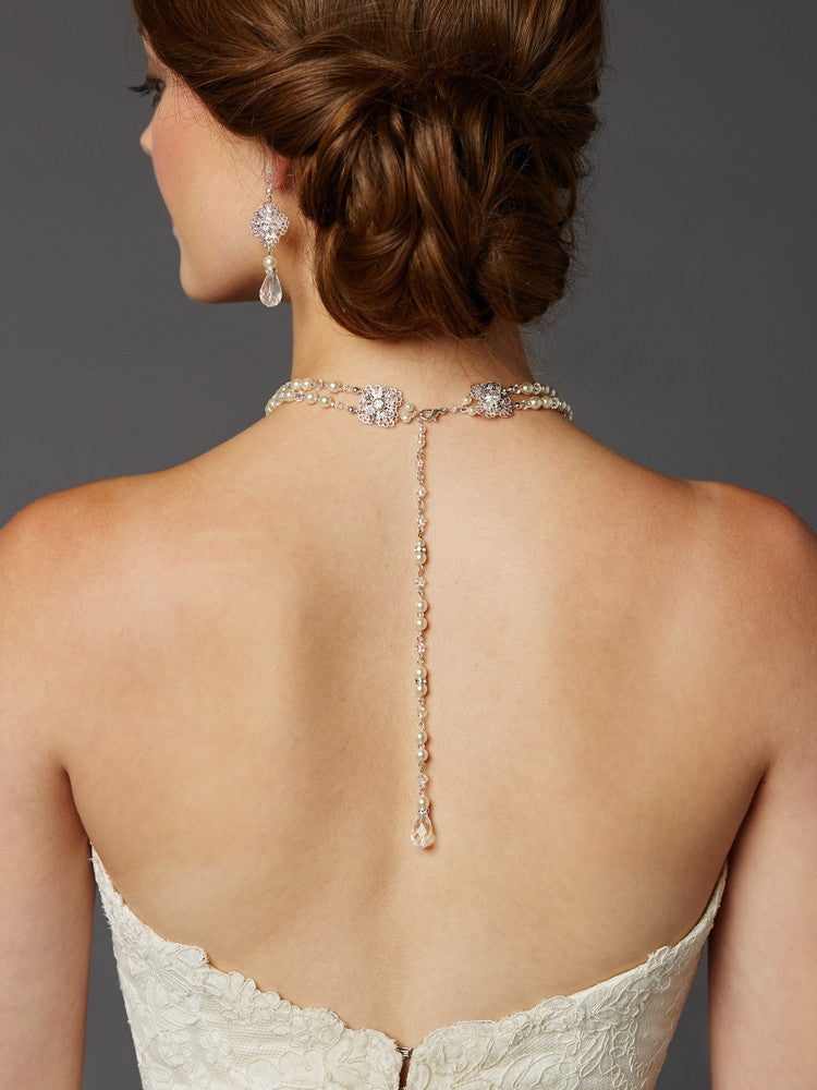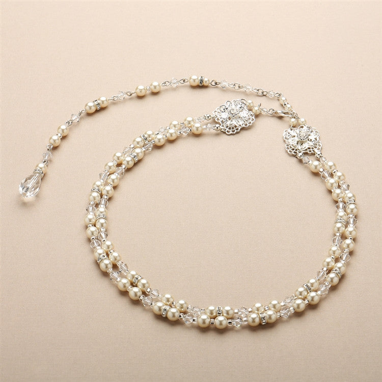Pearl and Filigree 2-Row Bridal Back Necklace 4397N-LTI-CR-S