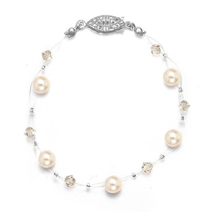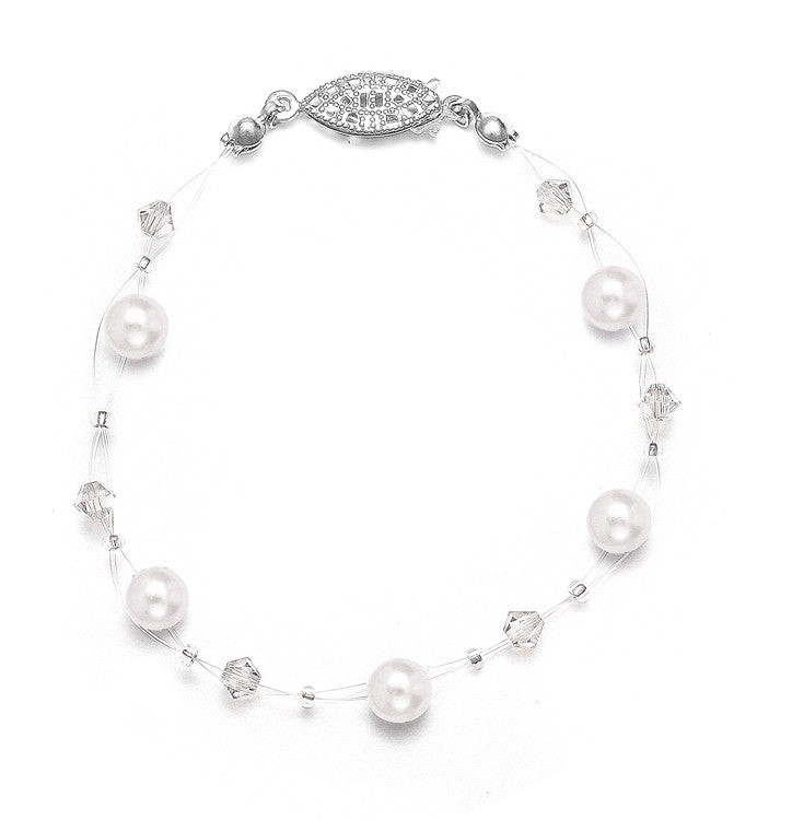 Pearl & Crystal Bridal or Bridesmaids Illusion Bracelet