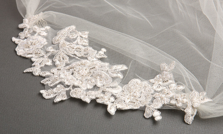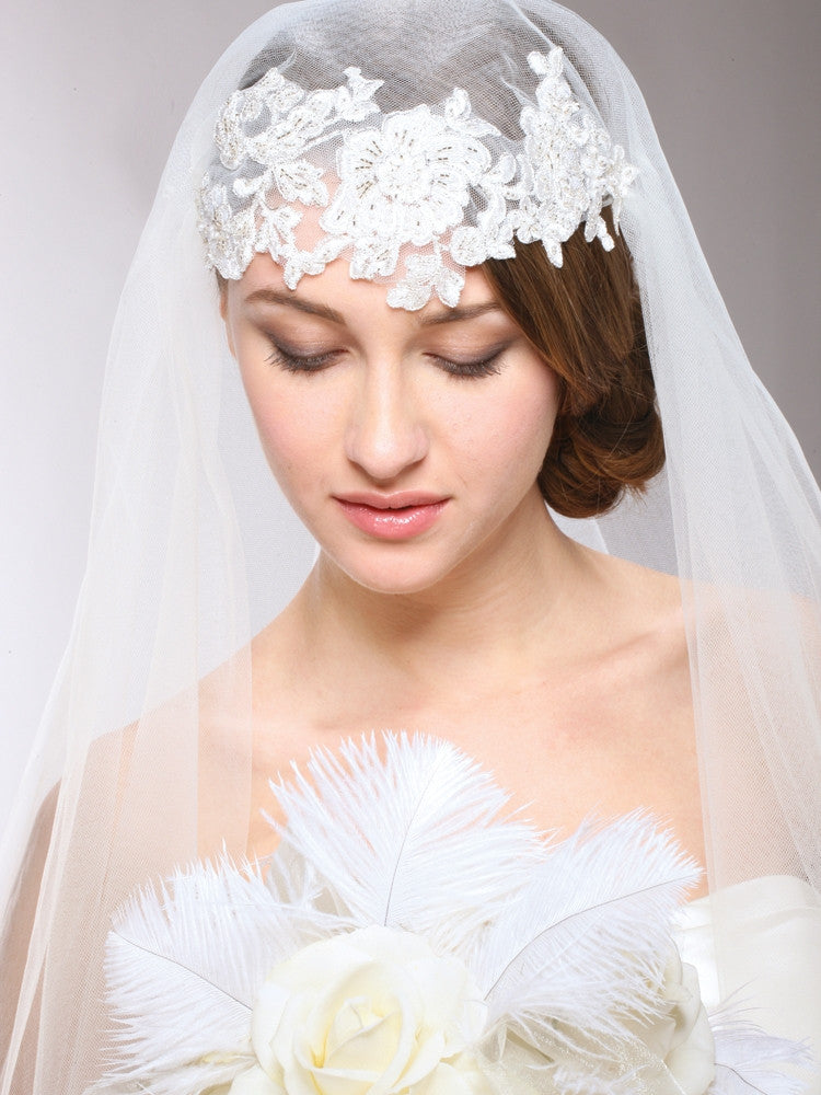 Renaissance Beaded Lace Applique Juliet Wedding Veil 3921V - Discontinued