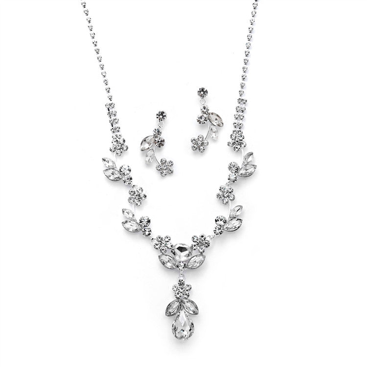 Rhinestone Crystal Vine Necklace and Earrings Set 4540S-CR-S