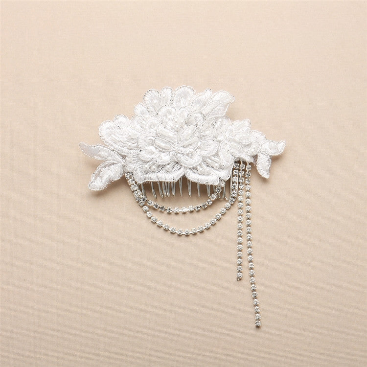 White English Rose Lace Comb with Crystal Draped Swags 4478HC-W