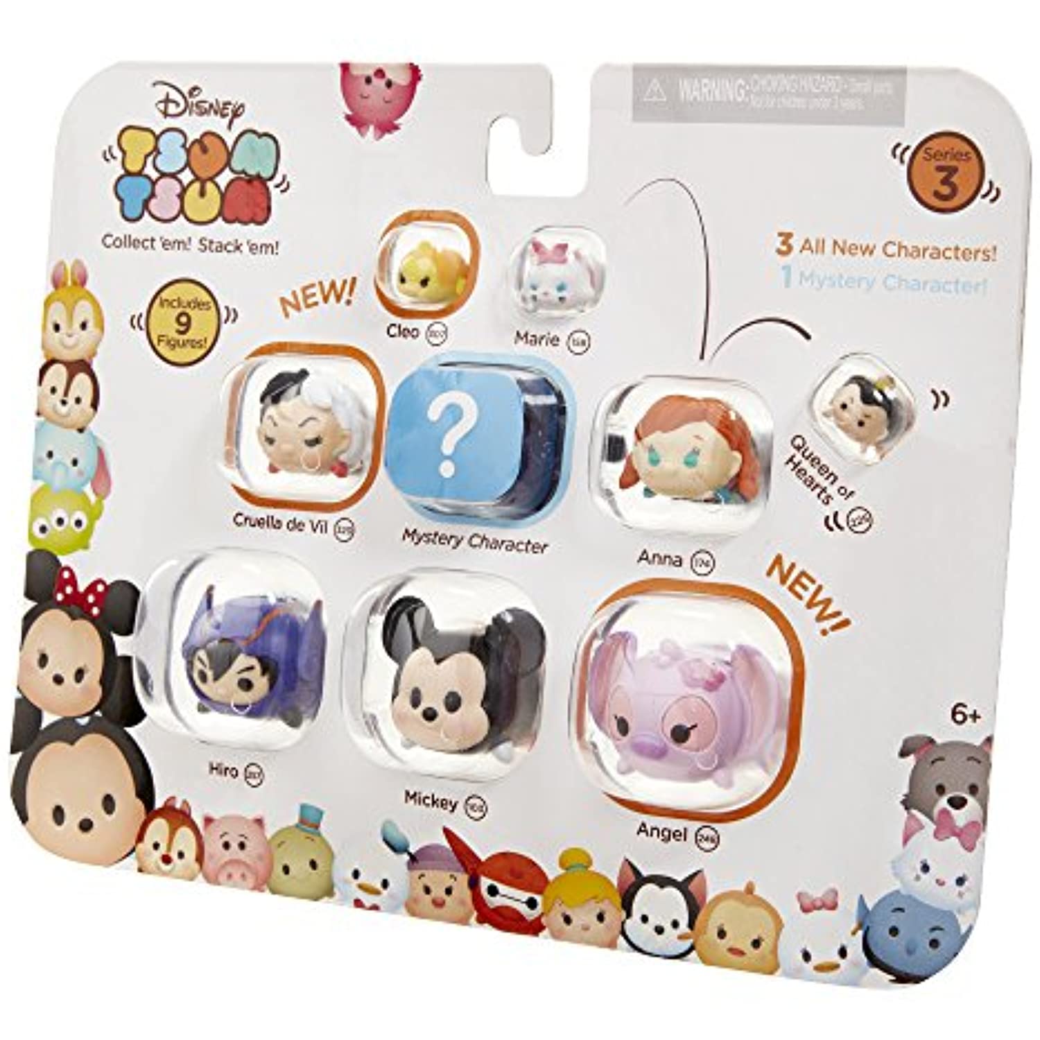 Collect, stack and display your favorite Disney Tsum Tsum characters! Each 9-Pack collectible set includes 3 large, 3 medium, and 3 small figures, of which 3 are exclusive and 1 is mystery. Track your collection with the included Series 3 Tsum Tsum Collector Guide and find all of the "common, lucky, and super lucky" Disney Tsum Tsum characters to complete your assortment! Find both sets. Collect'em! Stack'em! Ages 6+.
