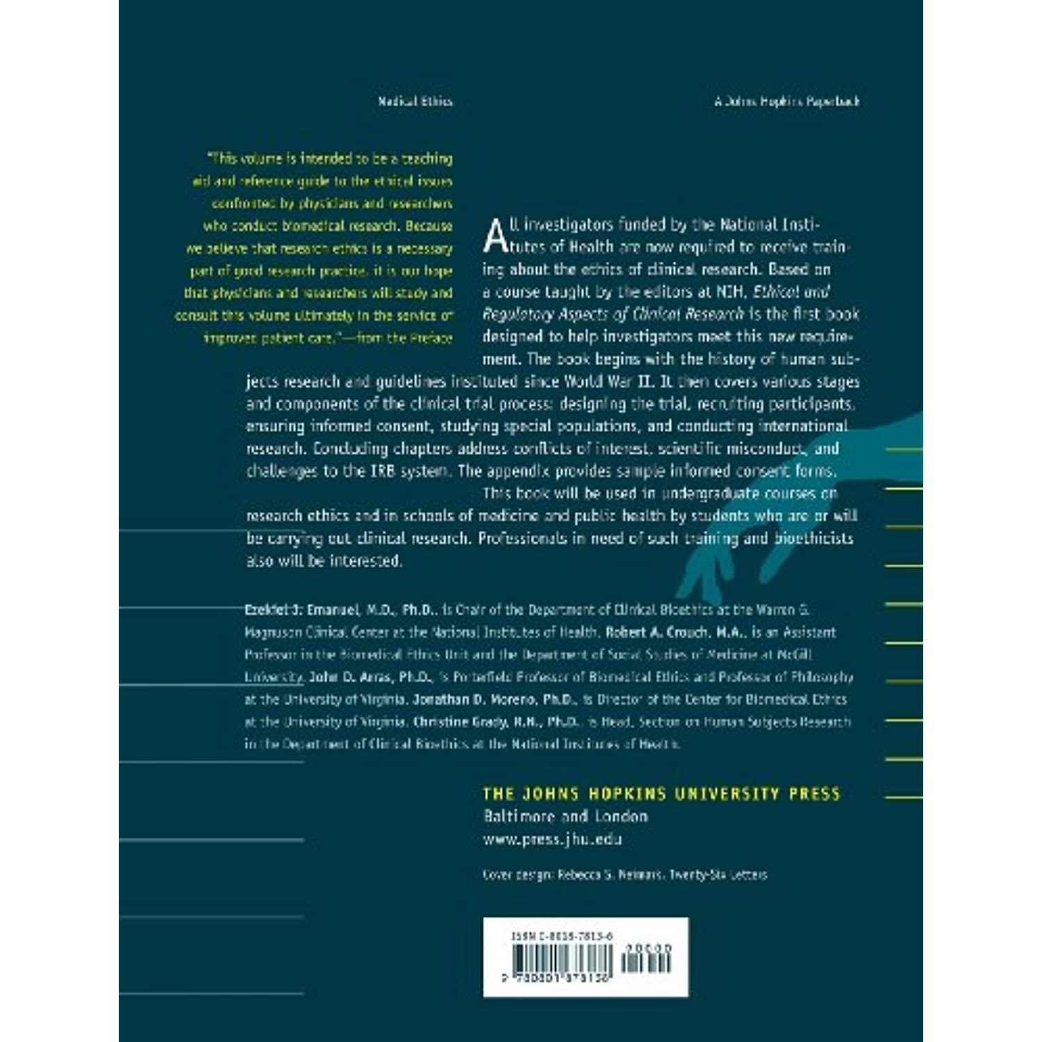 Product Description All investigators funded by the National Institutes of Health are now required to receive training about the ethics of clinical research. Based on a course taught by the editors at NIH, Ethical and Regulatory Aspects of Clinical Research is the first book designed to help investigators meet this new requirement. The book begins with the history of human subjects research and guidelines instituted since World War II. It then covers various stages and components of the clinical trial process: designing the trial, recruiting participants, ensuring informed consent, studying special populations, and conducting international research. Concluding chapters address conflicts of interest, scientific misconduct, and challenges to the IRB system. The appendix provides sample informed consent forms. This book will be used in undergraduate courses on research ethics and in schools of medicine and public health by students who are or will be carrying out clinical research. Professionals in need of such training and bioethicists also will be interested. Review Provides excellent material on a broad variety of ethical topics in clinical research. The editors are commended for the wise and diverse selection of articles and the broad range of sources of literature included. A lot of information is made available at a very affordable price. ― Quality Assurance Journal Many of the chapters easily deserve to be required reading . . . Most of the readings that have been chosen for the book can lay claim to being classics. They represent sophisticated thinking on various topics. -- Leonardo D. de Castro ― Bulletin of the World Health Organization One word will suffice to describe the book―outstanding. -- Sanjay A. Pai ― Current Science About the Author John D. Arras is associate professor in the Department of Epidemiology and Social Medicine at the Albert Einstein College of Medicine, and adjunct associate professor of philosophy at Barnard College, Columbia University.