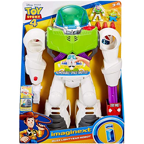 Your little Space Ranger will love creating awesome Toy Story adventures with Buzz Lightyear and this Imaginext robot playset, which features a removable spaceship and launch pad! Place Buzz in the cockpit of the spaceship and turn the Power Pad to open the wings. Now he's ready to blast off—to infinity and beyond! With a fully loaded projectile launcher, retractable claw arm, and hidden jail cell, this action-packed Imaginext playset has everything your child needs to create their own exciting Disney·Pixar Toy Story adventures! Imaginext Imagine What's Next!
