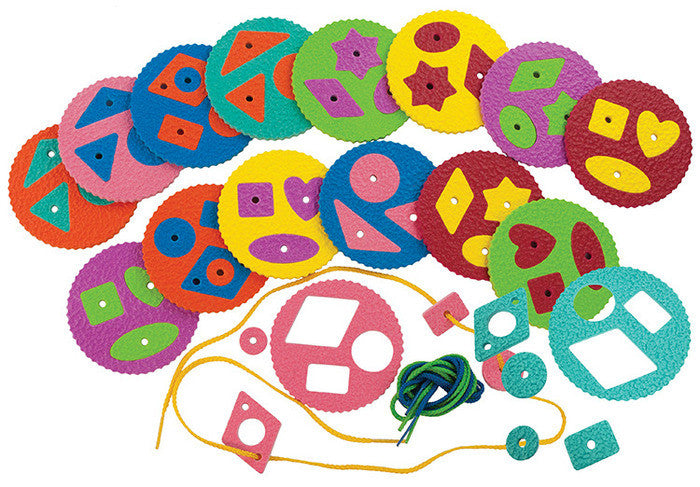 Contents: 52 Lauri Crepe Rubber Shapes, 16 Lauri Crepe Rubber Puzzle Discs, 3 Tipped Laces, Activity Guide