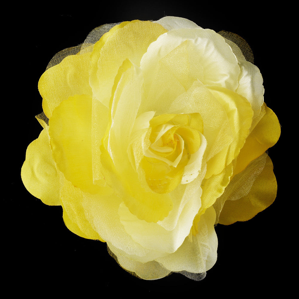 This beautiful rose is very versatile. The back of the flower has a hair elastic or clip to easily add in your hair. There is also a pin so this flower may be worn as a brooch on a gown. This may also be used as a corsage.