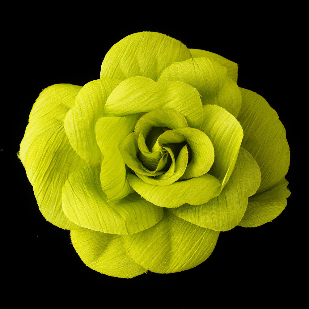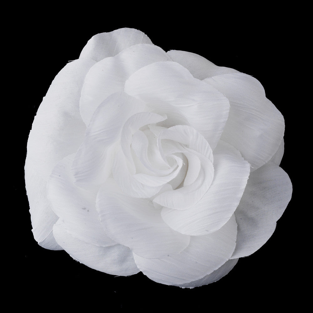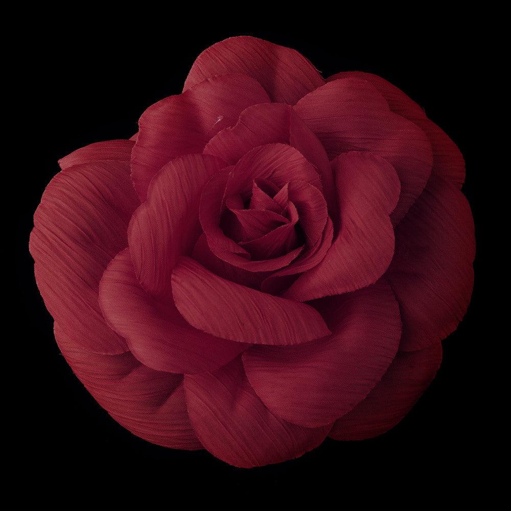 This pretty matte satin flower with elegant ridges adds the perfect finishing touch to your hair or special occasion gown. This beautiful flower will add style and glamour to your hair or dress. These flowers are perfect for wedding hair styles, bridesmaids up do’s, prom or party hair styles. This beautiful rose is very versatile. The back of the flower has a hair elastic or clip to easily add in your hair. There is also a pin so this flower may be worn as a brooch on a gown. This may also be used as a corsage.