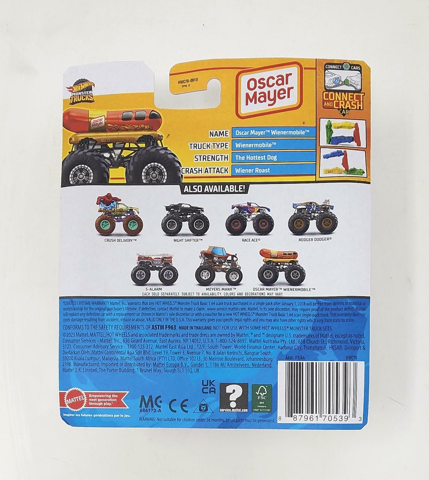 Hot Wheels Monster Trucks 1:64 Scale Die-Cast Vehicle | Oscar Mayer Snack Wienermobile | HWC76