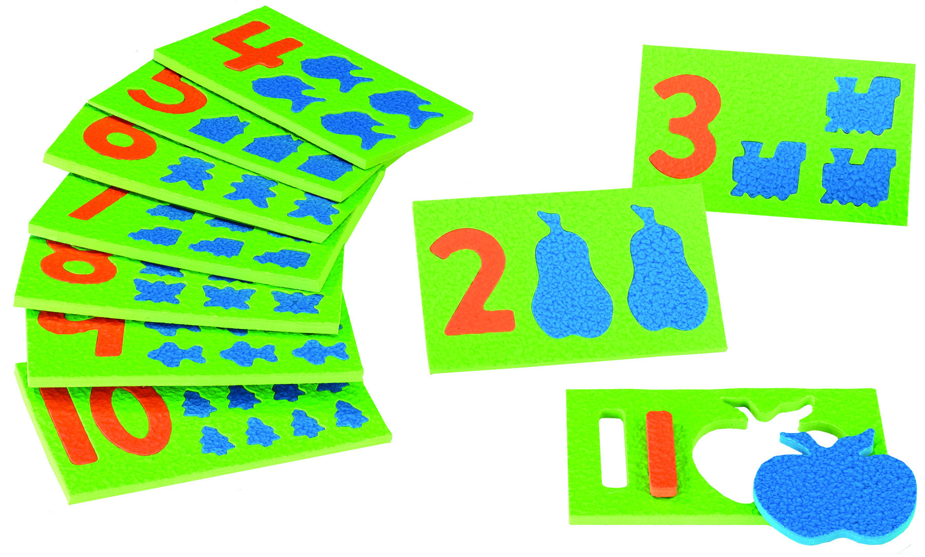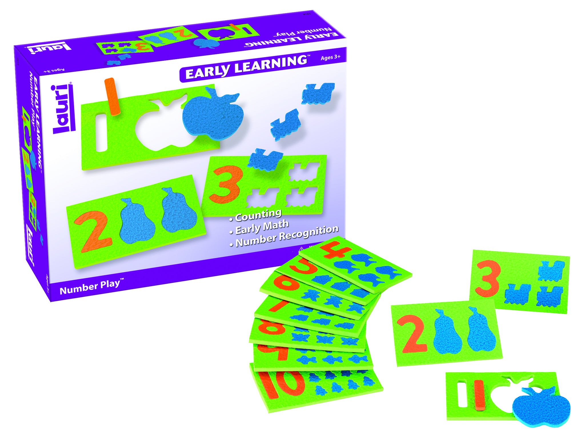 Puzzle pieces of familiar objects—trains, pears, fish, bells and more—teach youngsters what numbers represent. Number puzzle frames are 5¾" long and made of durable Lauri® crepe rubber.