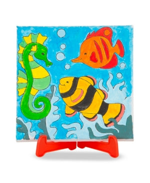 Budding painters can create whimsical animal scenes just like professional artists with this set of three stretched canvases with outlines for pictures of a safari, jungle, and underwater animals. Mix and match using the eight included tubes of paint, the mixing tray, and three paintbrushes. Frames are ready to hang, or display the completed works on the included stand. This is a perfect gift or activity for creative children to do alone or with friends. Gender: unisex.