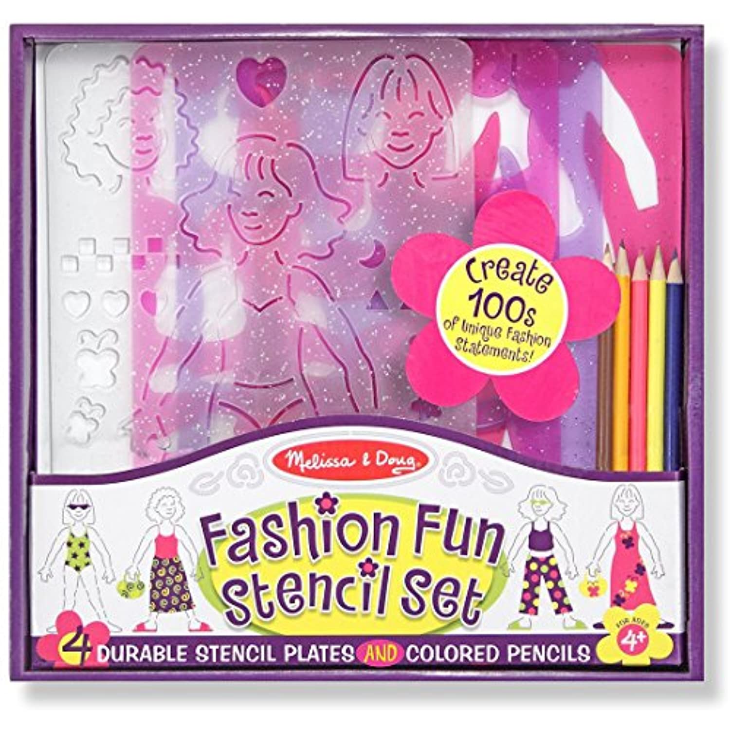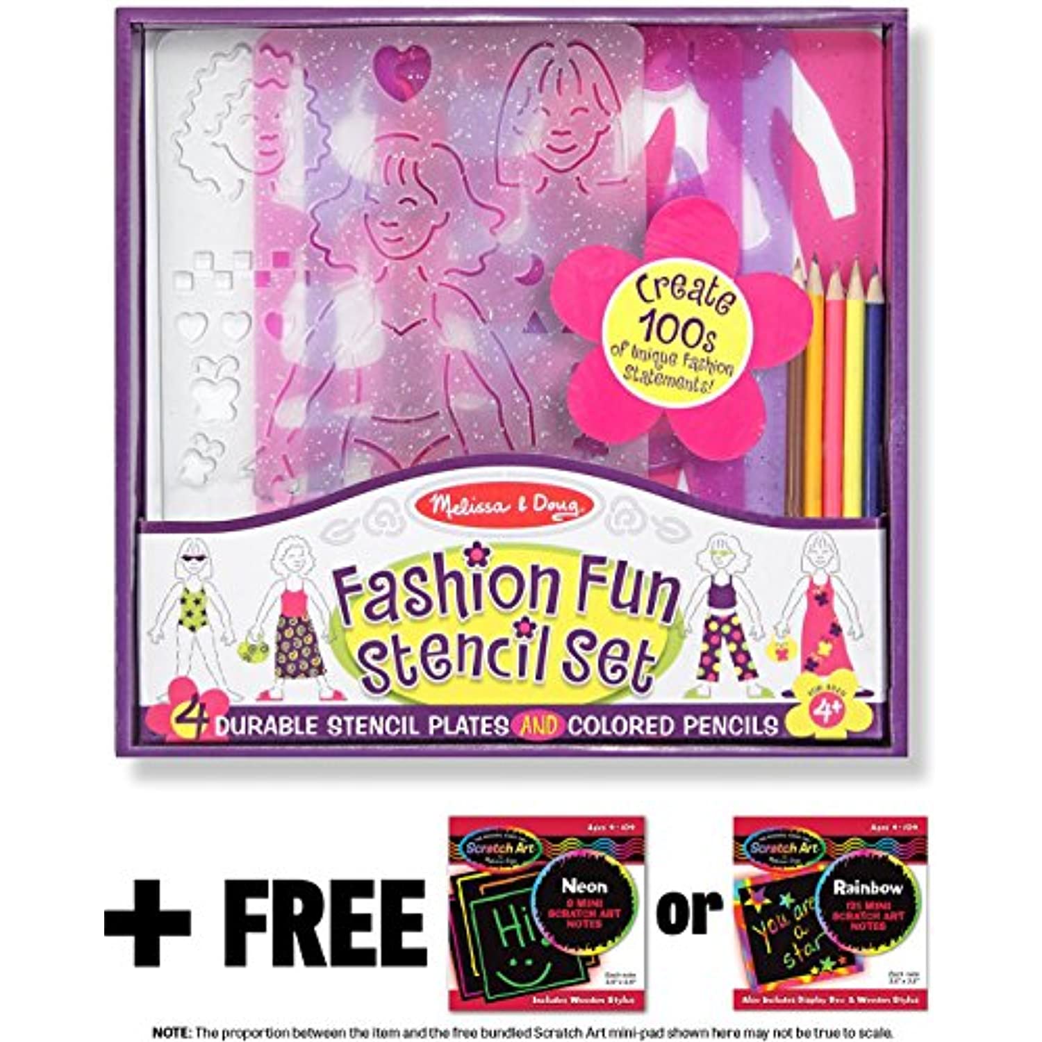Melissa & Doug Fashion Fun: Stencil Set & 1 Scratch Art Mini-Pad Bundle (04222)