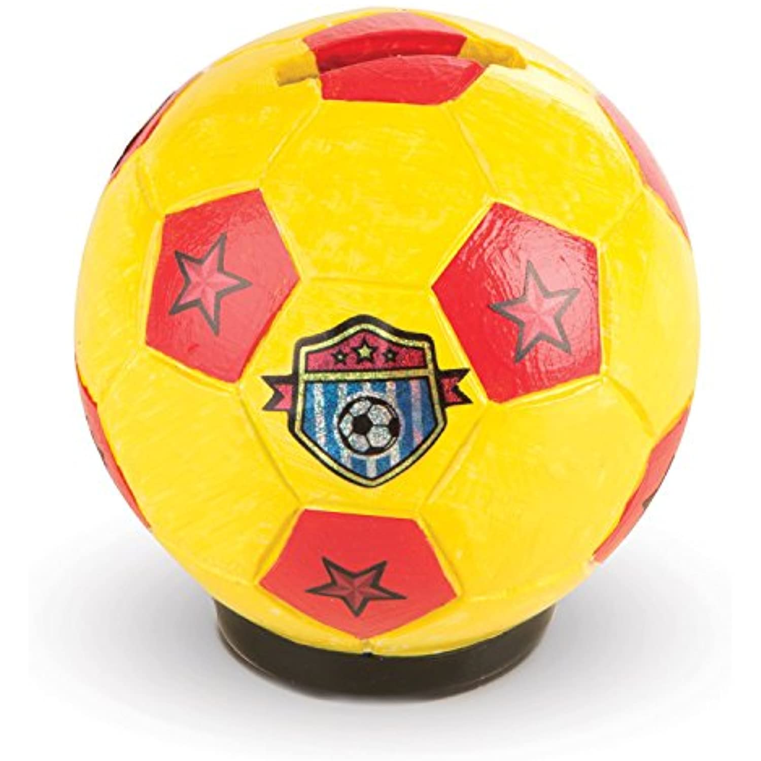 - Includes 3 resin banks (soccer ball, football, and baseball), 47 foil stickers, 105 letter and number stickers, 6 pots of color, and 3 brushes
