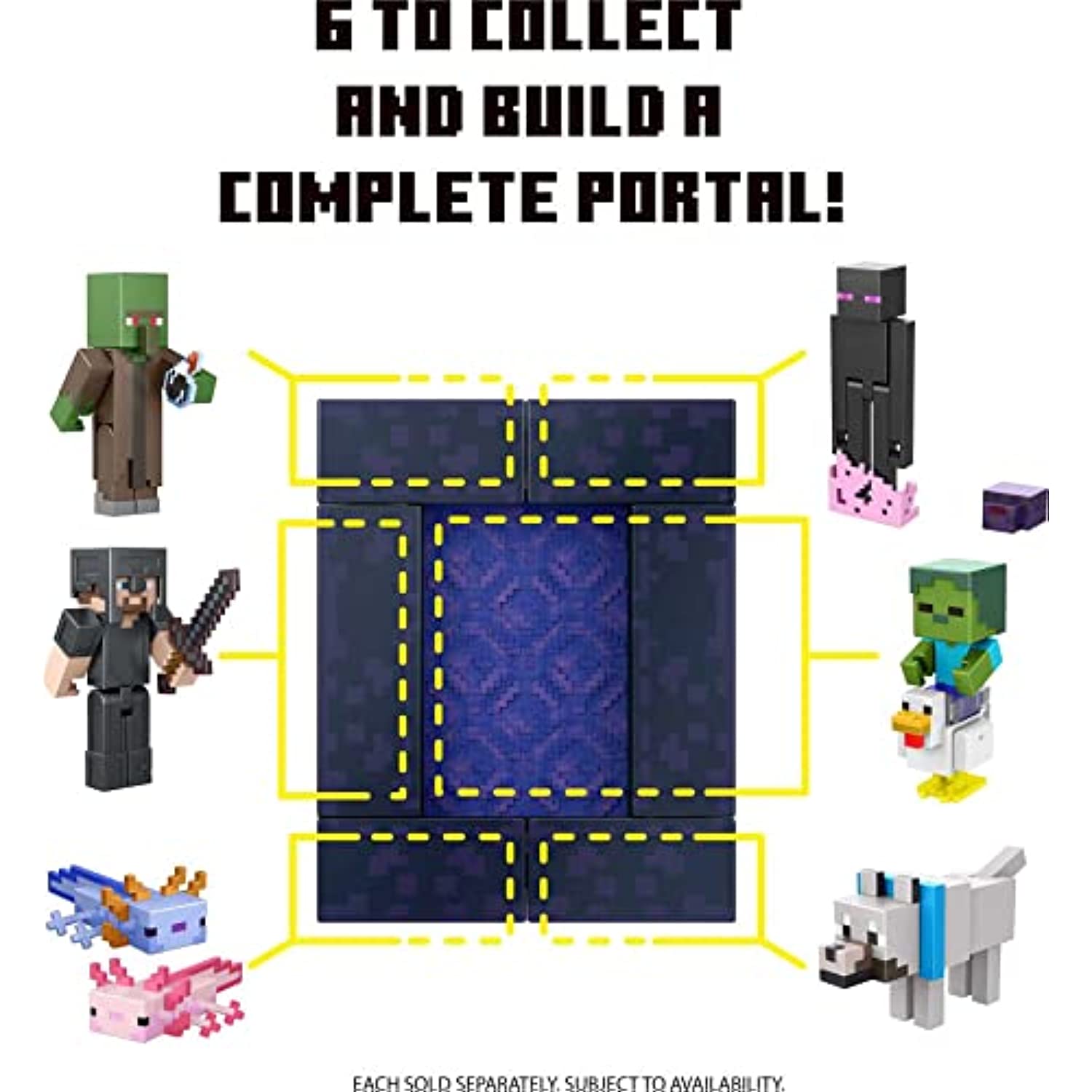 Create, explore and survive with Minecraft characters in 3.25-inch scale! These action figures have been authentically created using the video game's signature pixelated design, so they're great for play and display. Movable joints allow iconic characters to strike action poses, and new for 2022—each figure comes with one Build A Portal piece. Players can collect them all to build a complete Minecraft Portal that's twice as tall as Steve. Great gift for Minecraft fans. Each sold separately, subject to availability. Colors and decorations may vary.