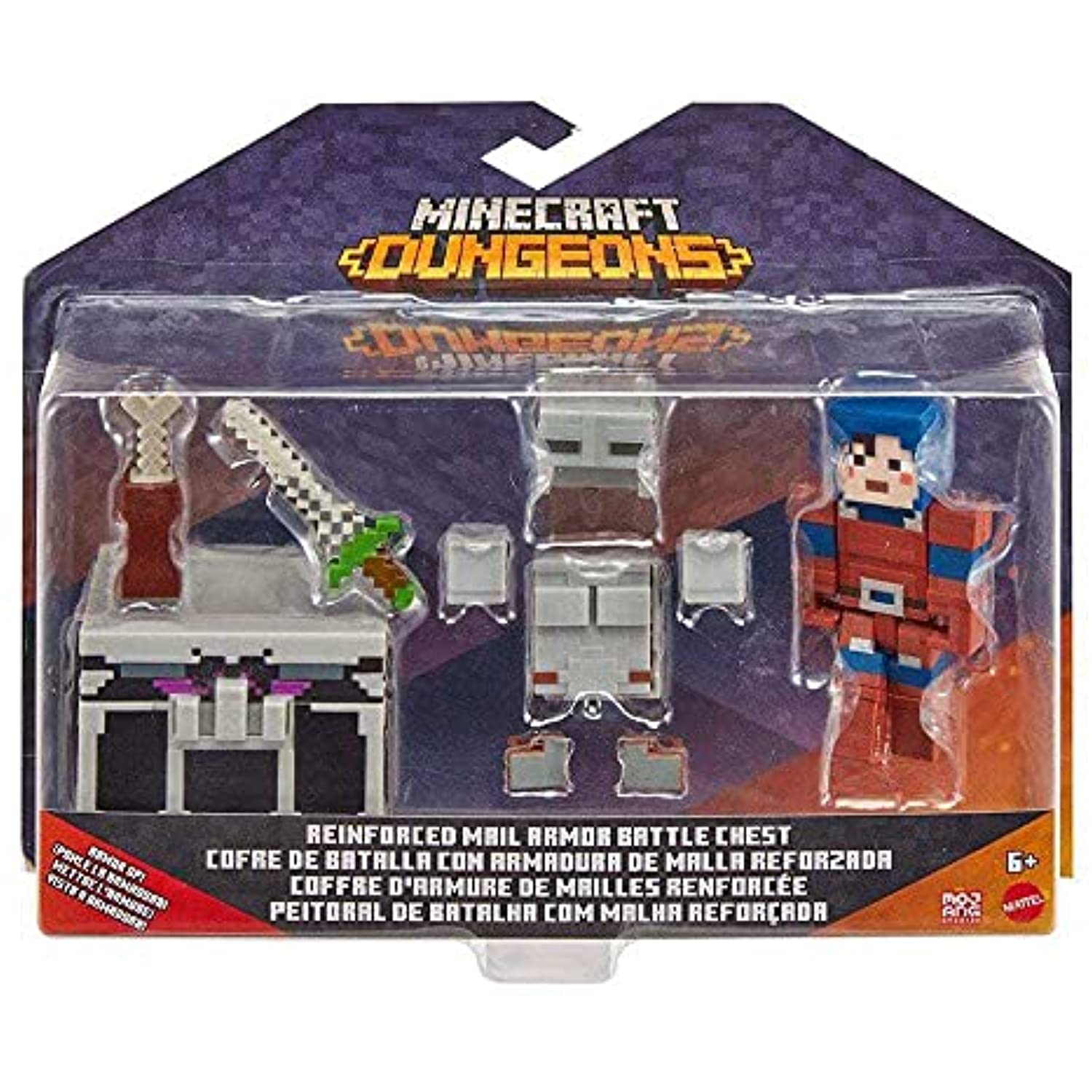 Time for Minecraft Dungeons fans to suit up in armor and head into combat to defeat mobs! Set comes with a suit of combat armor designed to fit the included 3.25-inch Minecraft Dungeons figure, plus a weapon and an additional battle accessory. Entire battle pack fits into the included battle chest for storage and safe keeping until the next battle rages! There are multiple battle chest sets available with new heroes and unique accessories. Minecraft Dungeons fans can collect them all to be ready for the most raging Minecraft Dungeons conflicts and crusades through the dark world of canyons, swamps, dungeons, and – of course – mines! Each set sold separately, subject to availability. Colors and decorations may vary.