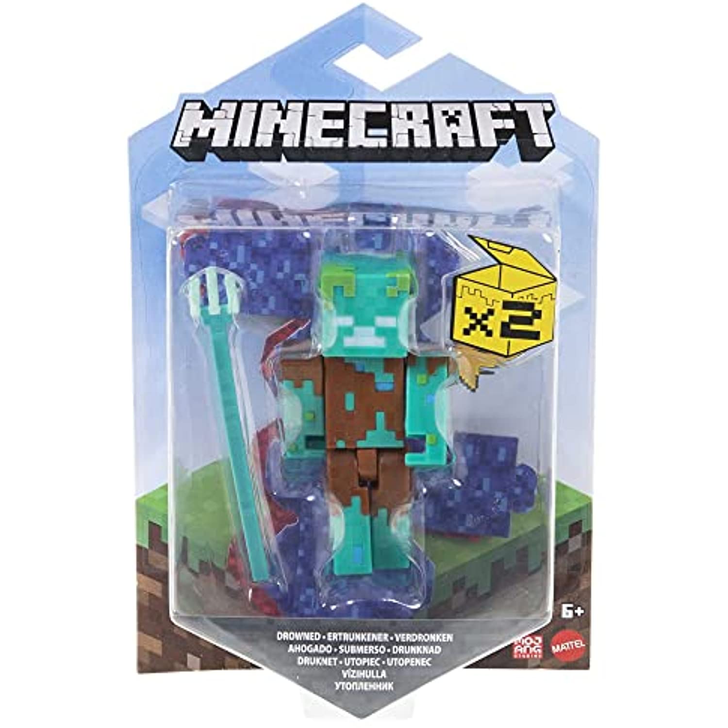 Minecraft Drowned Zombie 3.25" scale Video Game Authentic Action Figure with Accessory and Craft-a-block